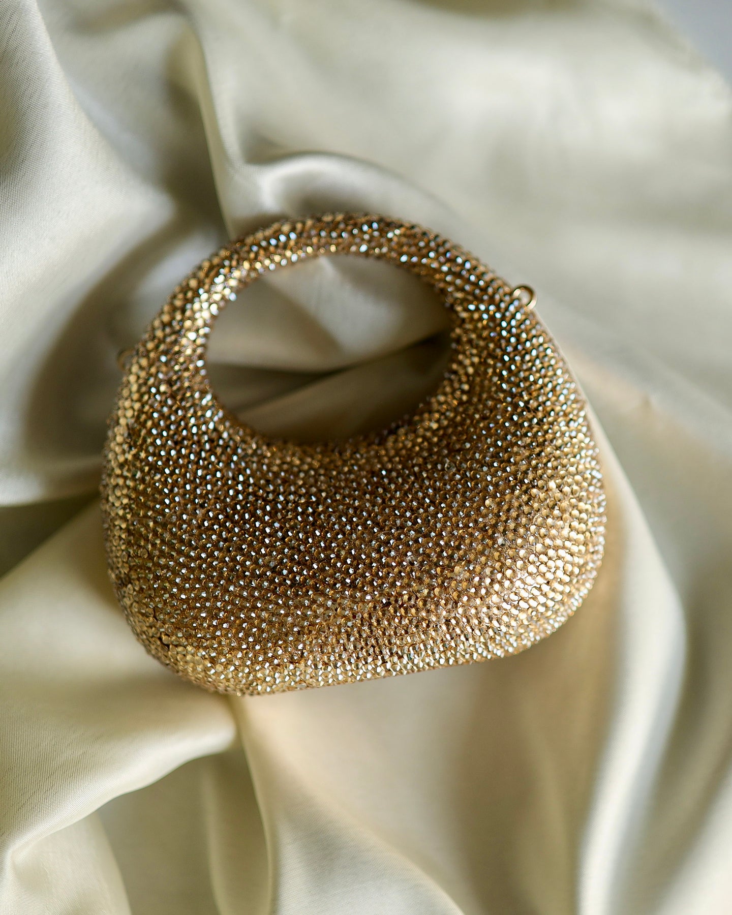 Making the best of your overall look is to accessorise it with something truly beautiful and uniquely designed to uplift your attire, this beauty encrusted with handcrafted crystal stones detail. The clutch has a magnetic closure and a detachable shoulder chain.